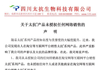 關于太抗?產(chǎn)品未授權任何網(wǎng)絡銷售的聲明發(fā)布日期:2017.05.15點擊量:6737 -