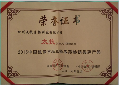 此次發(fā)布會(huì)上,中國(guó)農(nóng)藥工業(yè)協(xié)會(huì)在此次發(fā)布會(huì)上首次隆重公布了2015中國(guó)植保市場(chǎng)生物農(nóng)藥暢銷品牌產(chǎn)品,太抗——榮獲“2015中國(guó)植保市場(chǎng)生物農(nóng)藥暢銷品牌產(chǎn)品”稱號(hào)之一。