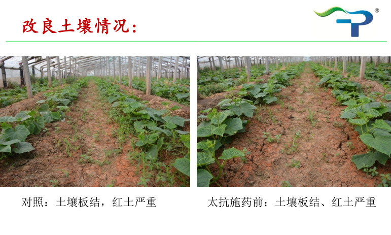 去年,太抗“枯芽春+木每靈”組合在山東區(qū)域的辣椒根腐病、豇豆莖基腐等病害上表現(xiàn)突出,得到種植戶與零售商的一致好評,給予其“枯木逢春”組合的美譽(yù)。今年,小抗的同事們結(jié)合公司土壤改良產(chǎn)品——土蘇,在山東青州某土壤板結(jié)嚴(yán)重的大棚黃瓜上,再次驗證了“枯木逢春”組合的神奇!